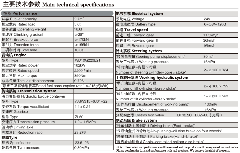 ◆采用全液壓負荷傳感轉向及雙泵合流工作液壓系統,舉臂快,掘起力大,操作輕便靈活;